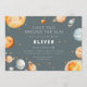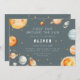 Cette invitation d'anniversaire « Premier Tour Autour du Soleil » présente un thème spatial doux avec des planètes, des étoiles et un soleil souriant dans des tons bleu-gris et neutres chauds. Les couleurs de l'illustration ne peuvent pas être modifiées, mais tout le texte peut être personnalisé. Un dos coordonné avec un motif d'étoile simple garde l'apparence propre et cohérente.