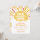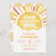 Cette adorable invitation pour le premier anniversaire de la fille au soleil rétro "PREMIER VOYAGE AUTOUR DU SOLEIL" présente un beau soleil à l'aquarelle, associé à des polices rétro, des nuages blancs et des vagues de soleil. Un beau dos de soleil est également inclus ! Cette invitation électronique et invitation pour le premier anniversaire est sûre de compléter n'importe quelle fête d'anniversaire sur le thème "Tu es mon soleil", "Premier voyage autour du soleil" et "Soleil" ! En utilisant le logiciel Zazzle facile à utiliser (aucun téléchargement nécessaire) directement dans votre navigateur, vous achetez et personnalisez simplement tout au même endroit. C'est aussi simple que cela !