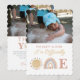 Premier tour autour du soleil Photo de 1er anniversaire boho Cartes de remerciement parfaites pour la fête du premier anniversaire que vous préparez ! La conception présente un arc-en-ciel boho et un soleil qui forme le mot un.