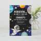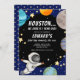 Pour le garçon qui a 1 ans. Invitation à la fête de premier anniversaire sur le thème de l'espace qui peut être personnalisée. Pour la première fête d'anniversaire pour un enfant de 1 an.