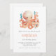 Cette mignonne invitation à la fête de premier anniversaire comporte une pieuvre orange aquarelle entourée d'algues et de minuscules poissons, au-dessus des mots "s'il vous plaît rejoignez-nous un tiers de la mer pour la première fête d'anniversaire de [nom] !" en caractères gris fusain italique. Personnalisez-le avec le nom de votre enfant en lettres peintes en orange, avec les détails en caractères gris sans serif sur un arrière - plan blanc. Idéal pour une fête d'anniversaire sur le thème de la sous-marine.