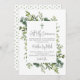 Magnifique cadre aquarelle avec verdure sur fond blanc rend cette invitation époustouflante ! Ajoutez les détails de votre fête en utilisant le formulaire de modèle. Du texte supplémentaire peut être ajouté au dos si nécessaire en utilisant la fonction Personnaliser.