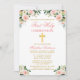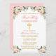 Elégante aquarelle rose blanc Floral First Holy Communion Invitation inclut roses roses, fleurs blanches et verdure. Croix d'or.
