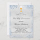 Arrière - plan à l'aspect argent Faux décoré de faux parties scintillant bleu poussière un chalice doré et un hôte. Personnalisez et ajoutez un nom et des détails de réception. Lettres de couleur noire.