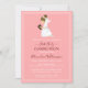 Invitations amis et famille pour célébrer la Première communion de vos filles avec cette adorable invitation mettant en scène une brune dans une robe de communion blanche tenant une bible sur un arrière - plan rose pâle. Le dossier est composé d'un arrière - plan rose souple et d'un double cadre blanc avec une bannière croisée et blanche avec le texte "Ma Première Communion". Facile à personnaliser avec des options personnalisées. Utilisez le bouton "Personnaliser" pour customiser le produit ou ajouter du texte.