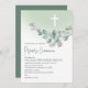 Célébrez la première sainte communion de votre enfant avec cette invitation catholique, avec des feuilles verts et une croix blanche. Parfait pour une jolie première communion. Español / Espagnol : Celebra la Primera Comunion de tu hijo o hija con esta invitacion.