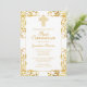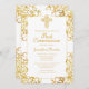 Parfait pour la première invitation à la communion de votre fils, ce design présente une fausse croix d'or en damas avec une bordure correspondante, Ci-dessous est vos détails de célébration pour vous de personnaliser dans une police classique. Conçu pour vous par un artiste de renommée mondiale ©Tim Coffey.
