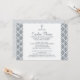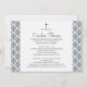 Personnalisez cette invitation Damask Design à envoyer à la famille et aux amis célébrant une première communion ou le baptême. Cette palette de couleurs est composée de tons gris acier damassé et blanc. Si le jeu de couleurs n'est pas ce que vous vouliez, veuillez me le faire savoir avant de passer votre commande et je vais recréer un nouveau design pour vous. paula@labellarue.com Assurez-vous de prouver votre design avant de soumettre votre commande. Si vous avez des questions concernant la conception, veuillez me le faire savoir et je serai heureux de vous aider en ce qui concerne la conception, mais une fois la commande envoyée, vous devrez contacter le service à la clientèle de Zazzle. Merci!