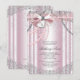 Invitations de première communion rose et gris avec de jolies perles en dentelle arc et croix de coeur. Vous pouvez facilement customiser cette belle invitation à la première communion rose et argent pour votre événement en ajoutant vos détails dans le style et la couleur de police, et le libellé de votre choix. Il s'agit d'un design imprimé sans vrais bijoux, perles, parties scintillant, etc.