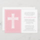 Cette première invitation de sainte communion de filles élégantes et modernes comporte une croix assez blanche sur un fond rose. Customisez facilement avec vos détails de communion ou de baptême.