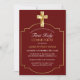 Célébrez la première sainte communion de votre enfant avec vos amis et votre famille en les invitant avec cette élégante fausse carte d'invitation de la première sainte communion en or. Ce design présente une belle croix dorée avec un cadre doré contre un simple arrière - plan bordeaux. Customisez le texte et la police à votre convenance. Autres polices et styles disponibles. Veuillez nous contacter pour toute demande spéciale et nous serons heureux de vous aider.
