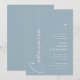 Invitation de première communion élégante moderne script bleu poussiéreux. Cliquez sur le bouton Personnaliser pour personnaliser ce design avec vos informations. Pour changer les couleurs et les polices, choisissez Modifier ce design pour ouvrir des options supplémentaires de personnalisation.