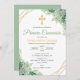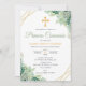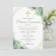 Célébrez la première communion de votre enfant avec cette invitation élégante ornée de magnifiques feuilles vertes à l'aquarelle et d'une délicate croix. Cette invitation religieuse capture parfaitement l'essence d'une communion catholique, alliant tendresse et sophistication pour créer un souvenir mémorable pour ce jour si spécial.