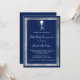 Une invitation moderne, élégante et raffinée. Un arrière - plan bleu marine décoré de craie et d'une hôtesse, faux cadre argenté. Personnalisez et ajoutez un nom et des détails. Texte blanc.