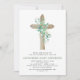 Sage Green Girl's Eucalyptus and Cross Botanical Greenery Aquarelle Religious First (1er) Holy Communion Invitations.