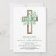Eucalyptus de Sage Green Boy et Verdure végétale de croix Aquarelle Religieux Première (1ère) Communion Invitations.