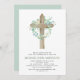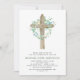 Eucalyptus de Sage Green Boy et Verdure végétale de croix Aquarelle Religieux Première (1ère) Communion Invitations.