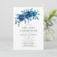 Les premières invitations de communion sainte à l'indigo et à la floraison blanche de la marine sont conçues pour être rapidement et facilement customisées aux détails de votre événement.