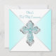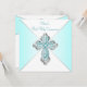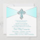 Invitation de première communion turquoise pour fille avec une croix diamantée élégante turquoise et argent sur un beau fond turquoise. Vous pouvez facilement personnaliser cette jolie invitation de première communion turquoise en ajoutant les détails de votre événement dans la taille et la couleur de police de votre choix, ainsi que la formulation de votre choix.