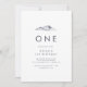 Cette simple invitation de premier anniversaire en montagne est parfaite pour une fête d'anniversaire en plein air. Le design minimaliste moderne présente un paysage montagnard bleu ardoise et marine abstrait.