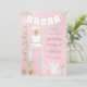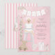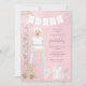 Invitation Première fille de naissance rose en chaise haute