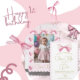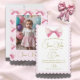 Invitation Première photo d'anniversaire aquarelle nœud rose
