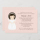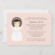 Première Sainte Communion Brunette Girl Cette belle et élégante Première Sainte Communion design d'une petite brune tenant son premier chapelet est sur un arrière - plan de coquillages rose et sucré. Chérissez les grands souvenirs de la première communion sainte de votre enfant avec ce magnifique design. Consultez les accessoires, la papeterie et les cadeaux de communion de la Première Sainte Communion correspondants.