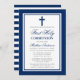 Elégante Marine Bleu et Argent Première Sainte Communion Invitation avec Croix. Refusé.