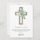 Sage Green Floral Boy's Eucalyptus and Gold Foil Cross Botanical Greenery Aquarelle Religious First (1er) Holy Communion Merci Invitations.