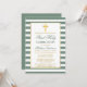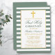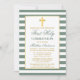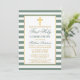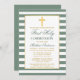 Élégante Première Sainte Communion Invitation avec Croix. Sage Green et White Stripes. Croix d'or.