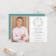 Une guirlande décorative et une croix d'argent s'assoient au-dessus de vos détails spéciaux de première communion sainte et photo spéciale sur ce design élégant. Le verso est assorti d'une guirlande de laurier et d'une croix d'argent. Conçu par Thisisnotme©