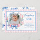 Carton d'invitation Préparatifs Grandmillennial Préparatifs Floral Bleu Nœuds. Modèle de carton d'invitation modifiable, personnalisez le texte pour le rendre vôtre. Modifiez la photo avec votre propre photo.