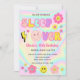 Apportez les bonnes vibrations avec ce nouveau visage rose pastel pastel preppy heureux dormir sur l'invitation d'anniversaire.