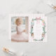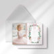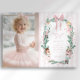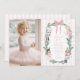 Send a magical birthday thank you card. This festive template features a dreamy Sugar Plum Fairy and Nutcracker set in a whimsical wreath, topped by a sweet coquette bow. The background uses a classic preppy stripe in pink for a nostalgic look. Easily edit this template to personalize the message!