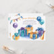 Une belle invitation à l'anniversaire dans le violet, le bleu et l'or avec de nombreux cadeaux de fantaisie, des ballons et un casquette de fête. Convient à tous les âges et à tous les sexes. <a href="https://www.freepik.com/free-photos-vectors/background">vecteur Arrière - plan créé par freepik - www.freepik.com</a>). <br/>() La carte est facile à customiser avec votre libellé, police, couleur de police, options de forme de papier et choix de six types de papier.<br/>() Pas exactement ce que vous cherchez? Tous nos produits peuvent être conçus sur mesure pour répondre à vos besoins sans frais supplémentaires.<br/>() Il vous suffit de nous contacter à heartfelthelper@gmail.com. b) a) Coordonner les produits disponibles : Demande-nous !