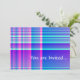 Impression écossaise vive bleue et rose avec des rayures épaisses et fines en vert menthe qui composent ce motif en plaid pastel. Il y a des bandes verticales et horizontales croisées de rose néon, de bleu néon et de vert néon.