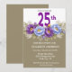 Invitation Pretty Blue and Purple Peony 25th Birthday