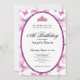 This elegant pink and white 18th birthday invitation has butterflies, a tiara crown, and a pink glitter oval with a personalizable template to create your own message. The invitation template is customizable in the listing editor and is also available as a digital download that's printable after you personalize it. It's a classic style that's perfect for a fun family event to celebrate a milestone birthday.