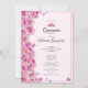 This elegant pink quinceanera invitation has a pink tiara crown, pink roses, and pink butterflies with a personalizable template to create your own message. The invitation template is customizable in the listing editor and is also available as a digital download that's printable after you personalize it.