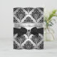 Invitation d'anniversaire pour les 16 ans Silver & Black. Joli damas & noeud à bijou. Remarque : toutes les images plates, elles n'ont pas de vrais bijoux !