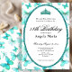 This elegant teal and white 18th birthday invitation has butterflies, a tiara crown, and a teal glitter oval with a personalizable template to create your own message. The invitation template is customizable in the listing editor and is also available as a digital download that's printable after you personalize it. It's a classic style that's perfect for a fun family event to celebrate a milestone birthday.