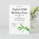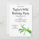 Cet invitation présente une illustration peinte d'une mante en vert vif aux accents orange et est prêt à être customisé avec tous les détails de votre fête.