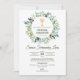 Célébrez la première sainte communion de votre enfant avec cette élégante invitation avec une couronne verdoyante et un mignon chalice. Parfait pour une célébration mémorable de la Première Communion. Español / Espagnol : Celebra la Primera Comunion de tu hija con esta invitacion.