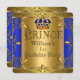 Invitation Prince 1er anniversaire Boy Royal Blue Gold Crown