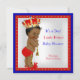 Prince Baby shower. Blanc rouge et Bleu et Or, Petit Baby shower Prince. Joli garçon avec une couronne d'or. Baby shower pour bébés afro-américains d'origine africaine, bébé à la peau foncée. Baby shower vintage pour un garçon. Baby shower très mignon.