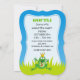 Caricature de la grenouille Prince avec couronne sur herbe verte sous ciel bleu.
