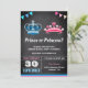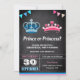 Éblouissez vos invités avec ce genre mignon révèle invitation avec une couronne bleue et une tiare rose avec typographie moderne contre un arrière - plan de tableau noir. Ajoutez simplement les détails de votre événement sur ce modèle facile à utiliser pour en faire une invitation unique.