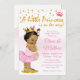 Invitations Princess bébé douche avec adorable fille de princesse afro-américaine portant un mignon tutu rose et un chapelet de perles sur un joli étincelant or et arrière - plan de diamant.