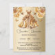 Un magnifique arrière - plan faux or encadre des roses d'aquarelle faux or et une robe de bal de conte de fées avec des tapis et un corps serré. Deux papillons dorés et noirs sont vus, un de chaque côté de la robe, qui semblent briller dans la lumière. Vous trouverez ci-dessous le script de calligraphie noire et le modèle de texte de type roman pour votre libellé personnalisé. Si votre fille célèbre son 15ème anniversaire de quinceañera ou si vous êtes en train d'accueillir une douche de nuptiale pour une mariée, cette invitation est idéale. Gâchez votre fille à son occasion spéciale avec cet invitation de luxe.