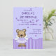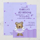 Cette invitation mignonne de partie d'anniversaire de enfant comporte un petit ours de nounours avec les ailes féeriques portant une robe bleue, un diadème et tenant une baguette magique magique sur un arrière - plan bleu avec des rayures et des points. Peut être employé comme carte de remerciements, une invitation de partie, un faire-part et plus. Complètement personnalisable.